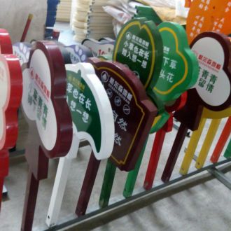 read more >花草牌一般造型多樣,美觀可愛,有動物造型,有花草造型,還有各種設(shè)計元素造型等。色彩多數(shù)也比較艷麗,為了能在花草叢中凸顯出來,顏色多為暖色為主。或根據(jù)該單位來的標(biāo)準(zhǔn)色來決定色彩。主要廣泛適用于園林、房地產(chǎn)、學(xué)校、小區(qū),庭院綠化,工廠市政工程、