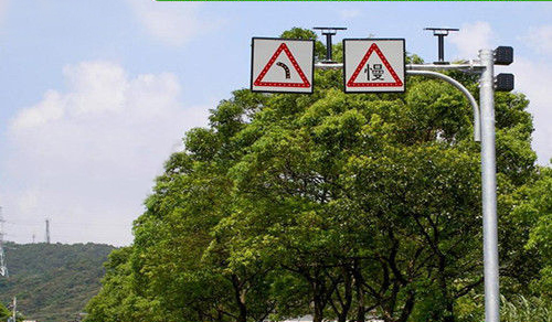 太陽能交通標志是交通標志牌的一種,由標志面、標志底板、太陽能電池板、控制器、發(fā)光單元(LED)組成,用文字與圖案傳遞警告、禁令、指示信息給司機和行人,用以管理道路交通的安全設(shè)施。它給道路使用者以確切的道路交通信息,使道路安全暢通,事關(guān)司機和行人的生命財產(chǎn)安全,是一種不可缺少的交通安全附屬設(shè)施。